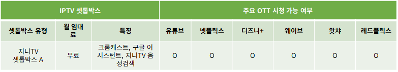 Q. 셋톱박스 임대료와 시청 가능한 OTT가 궁금해요 !