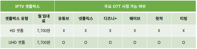 Q. 셋톱박스 임대료와 시청 가능한 OTT가 궁금해요 !